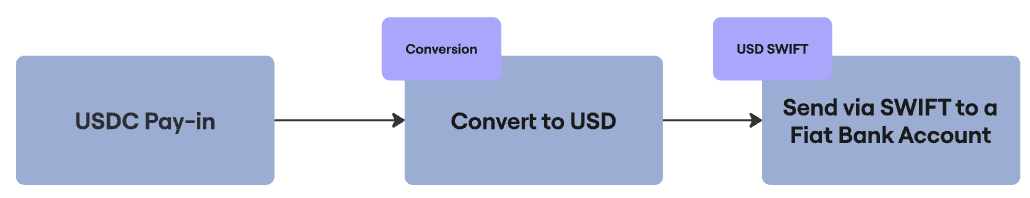 - Send USD via SWIFT and receive stablecoins like USDC directly in a crypto wallet.